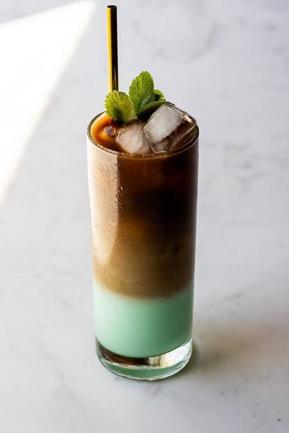 Introducing the "Mint Seduction Mingle" – a mocktail that's a sultry dance of flavors and allure. Envision the tantalizing fusion of rich coffee mingling with the invigorating embrace of spearmint and peppermint, all cascading over crushed ice in an electrifying performance. As they blend, a seductive elixir emerges, where the bold notes of coffee entice with every sip, while the cool mint leaves a trail of tingling sensations. Garnished with fresh mint leaves, the "Mint Seduction Mingle" is more than a mocktail; it's a journey of sensuous delight that envelops you in an atmosphere of irresistible allure. With each taste, you're transported to a realm of heightened sensations, leaving you captivated and enchanted by the sultry symphony in your glass